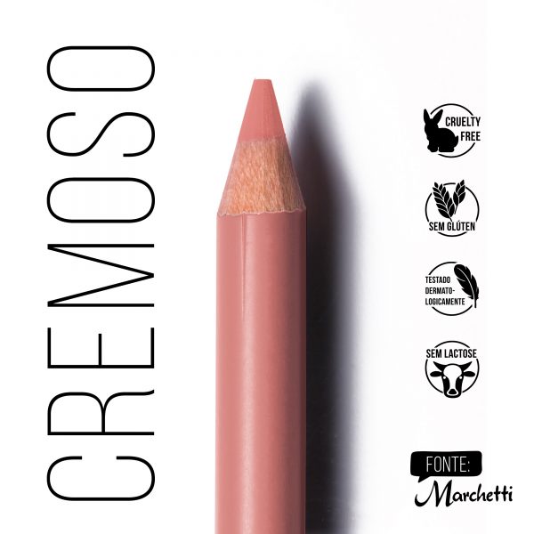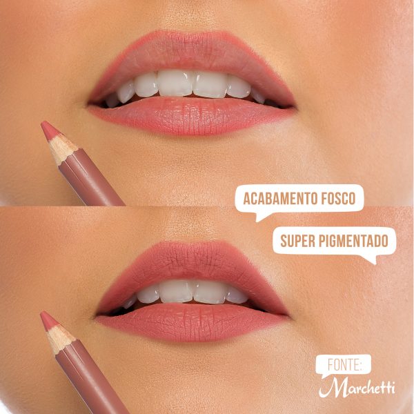 O Lápis Delineador de Lábios Marchetti é apontável, com textura cremosa e ótima espalhabilidade, seu acabamento é fosco.