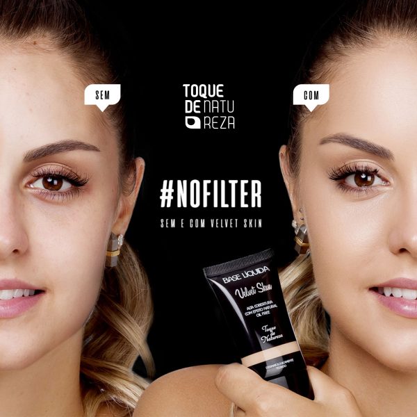 Dica de uso: A aplicação pode ser com pincel para base, com esponjinha, ou com os dedos mesmo… o resultado é sempre uma pele com alta cobertura que parece natural. Para um efeito ainda maior, confira nosso COMBO com o Corretivo Velvet, produtinho totalmente compatível e que confere um resultado incrível!
