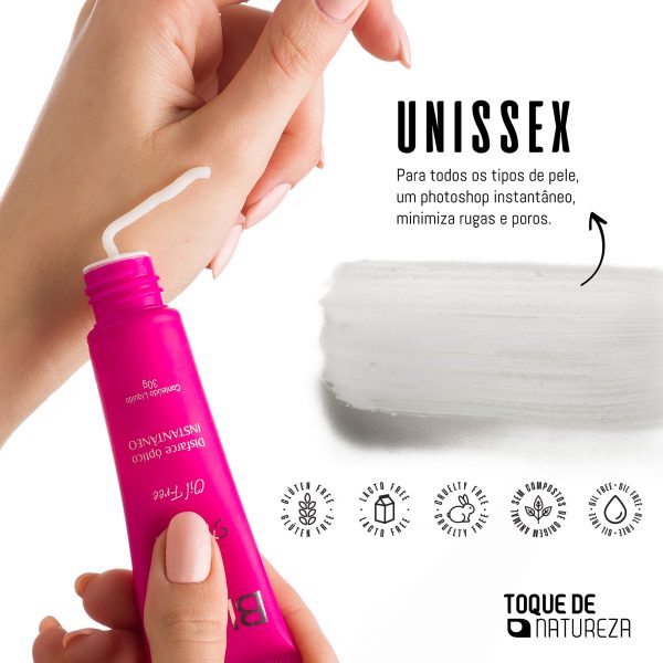 É oil free – recomendado para todos os tipo de pele, em especial para aqueles que precisam corrigir a textura da pele por terem poros muito dilatados, rugas ou marcas de acne.