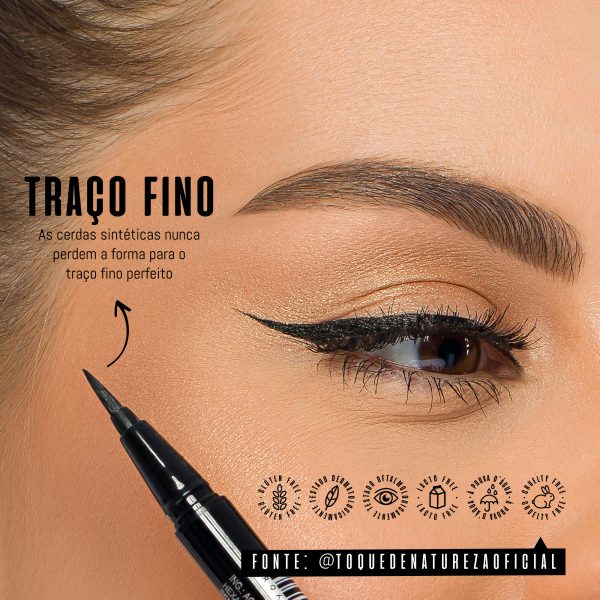 A Caneta Delineadora de Olhos Toque de Natureza é de alta cobertura, secagem rápida e fixação prolongada. É á prova d’água e possui cerdas sintéticas conferindo traço superfino sem perder a ponta.