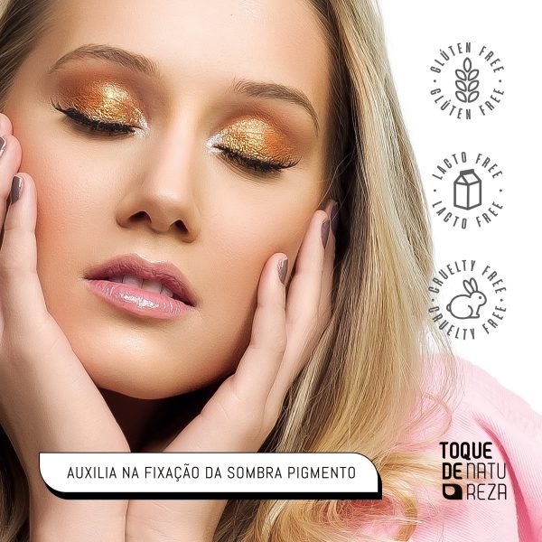 O Fixador de Sombras Toque de Natureza possui textura de gel potente na adesão de sombras, glitters ou pigmentos. Não é pegajoso e permite aplicação em regiões mais precisas. Contém 3g!